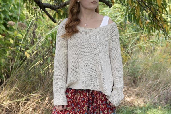 It’s an easy breezy fall—no one wants to be uncomfortable in a tight neckline. Pair it with a cute tank with decorative straps for a special touch.