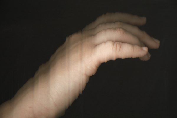 In the largest scanograph, a hand is splayed in front of a face, the fingers glitching. The other two are similar, with a hand and a foot suspended in inky black. Using a scanner to produce flattened images without much depth, van Loveren Geis hopes to convey how people are given limited space to form their identities. Tackling her biracial background in her work, van Loveren Geis explores the implications of presenting as another ethnicity.