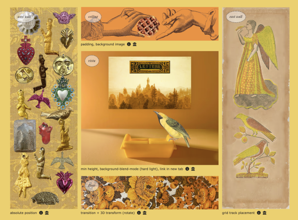Many aspects of building the website came unexpectedly, spurred by strokes of luck. When photographing a piece of doll furniture, for example, she noticed the way the light glinted into the room, illuminating the yellow plastic sofa. Mader-Meersman was inspired to make a chapel.